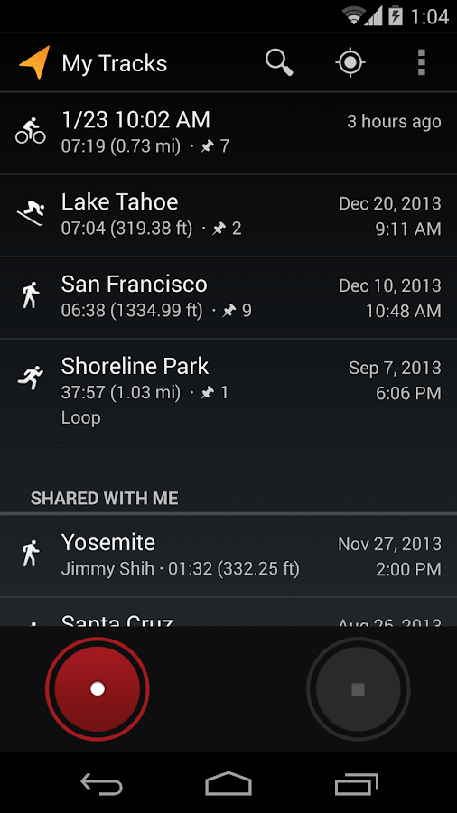 6/5/14 17:46Ця її простота характеризується тим, що для управління - є дві основних кнопки. За допомогою однієї - можна починати та призупиняти записування шляху, за допомогою другої - взагалі зупиняти запис.